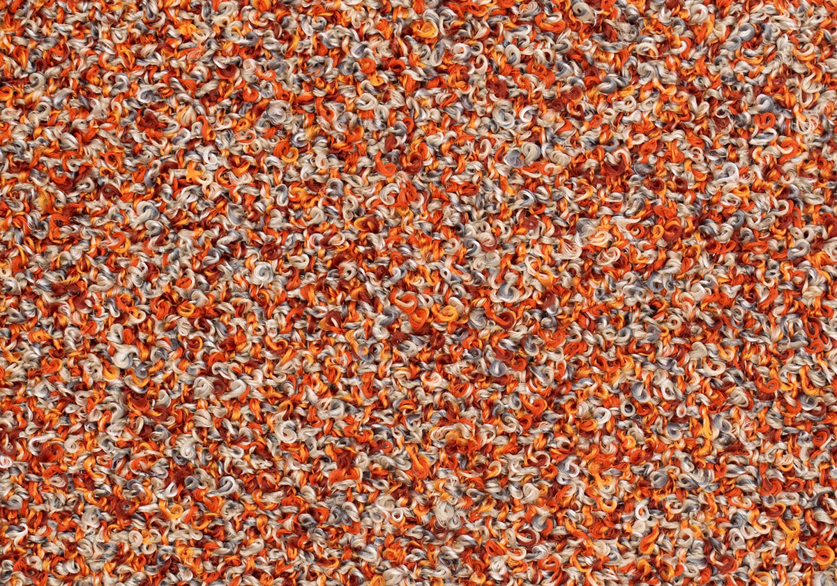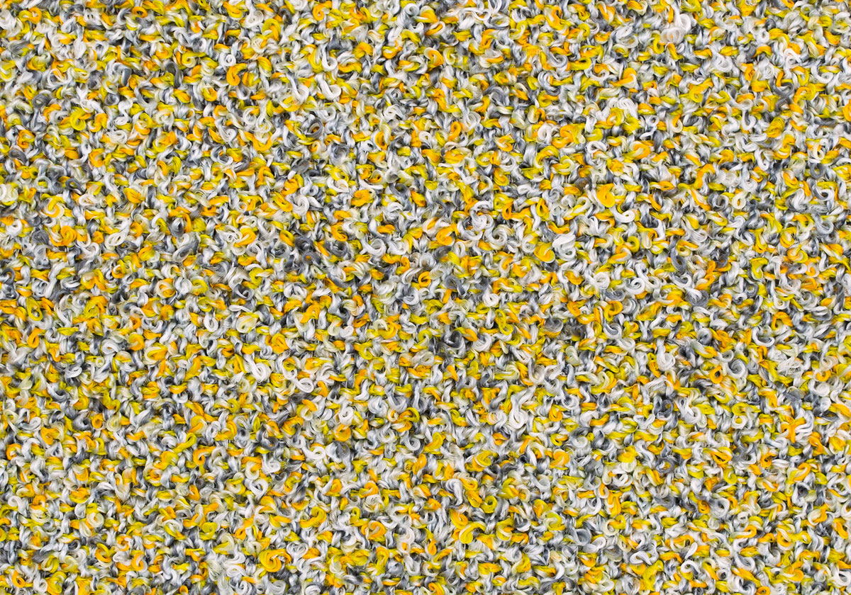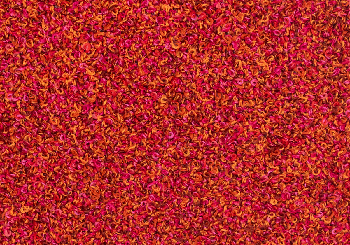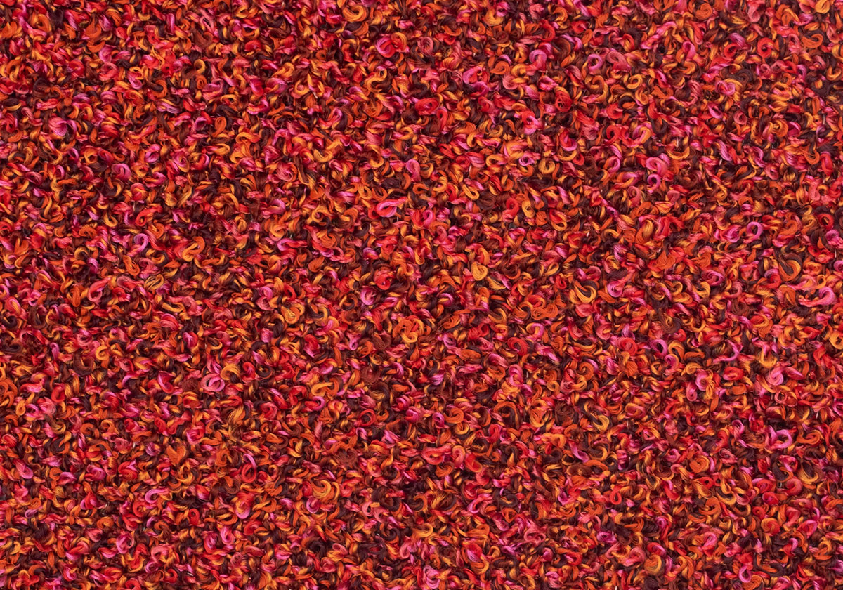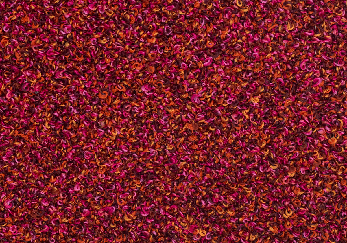 Per ottenere l’aspetto materico di questo tessuto, la lavorazione più importante è quella a monte della tessitura. Una volta lavorato a telaio, è il filato a creare il particolare effetto bouclé che caratterizza il tessuto. La sua
