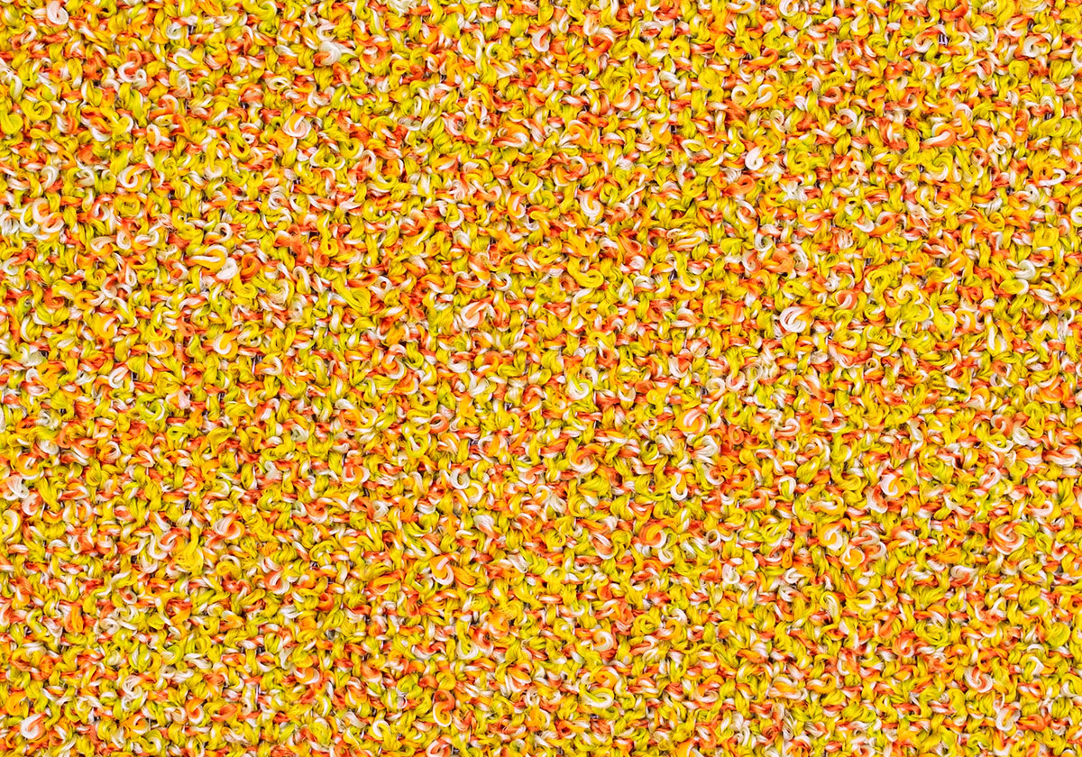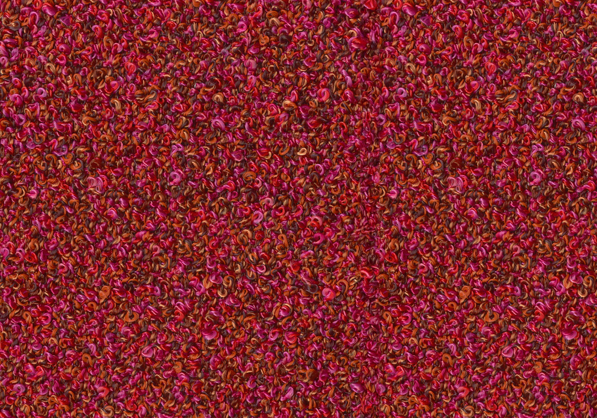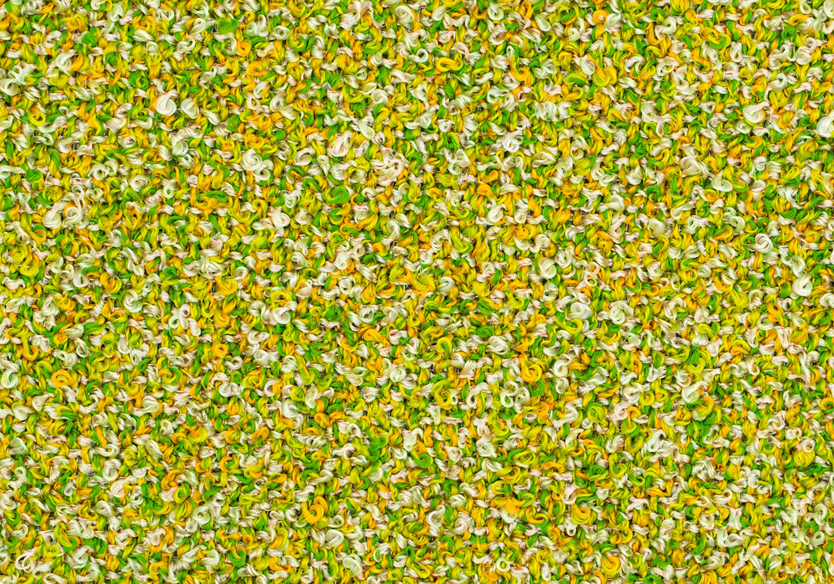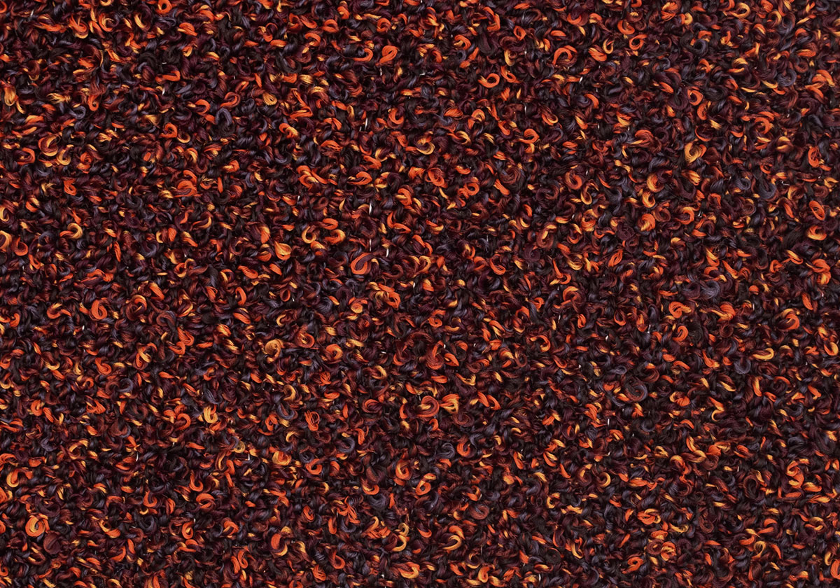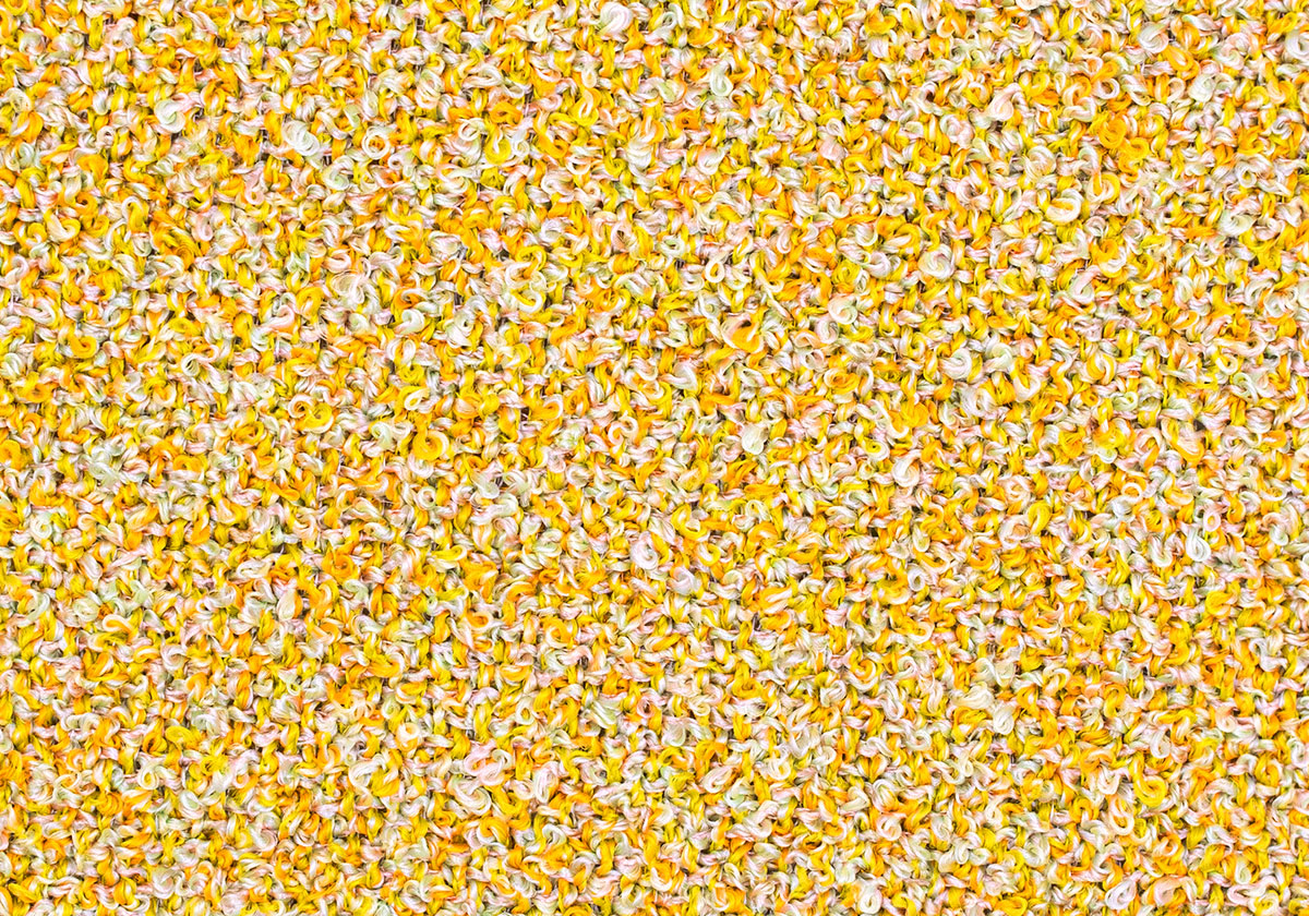 Per ottenere l’aspetto materico di questo tessuto, la lavorazione più importante è quella a monte della tessitura. Una volta lavorato a telaio, è il filato a creare il particolare effetto bouclé che caratterizza il tessuto. La sua