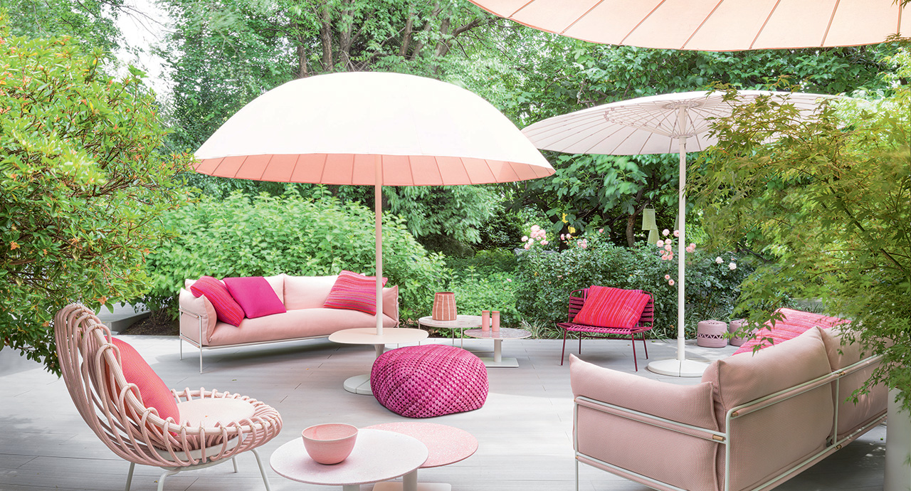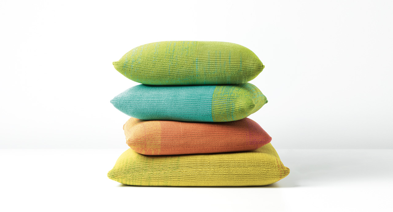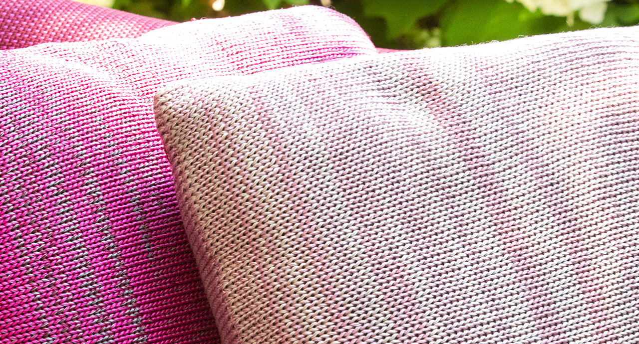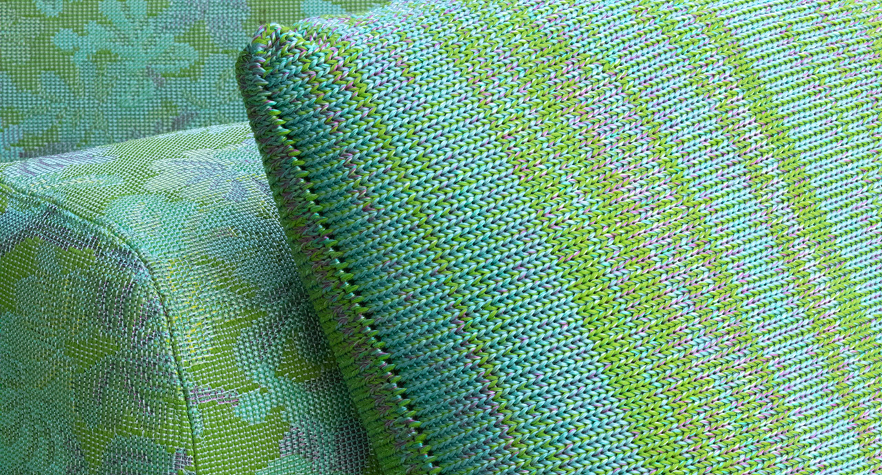 Le tonalità della maglia utilizzata per il rivestimento sono ottenute mischiando filati in poliolefine avanzati dalla tessitura dei tessuti per esterno di collezione.