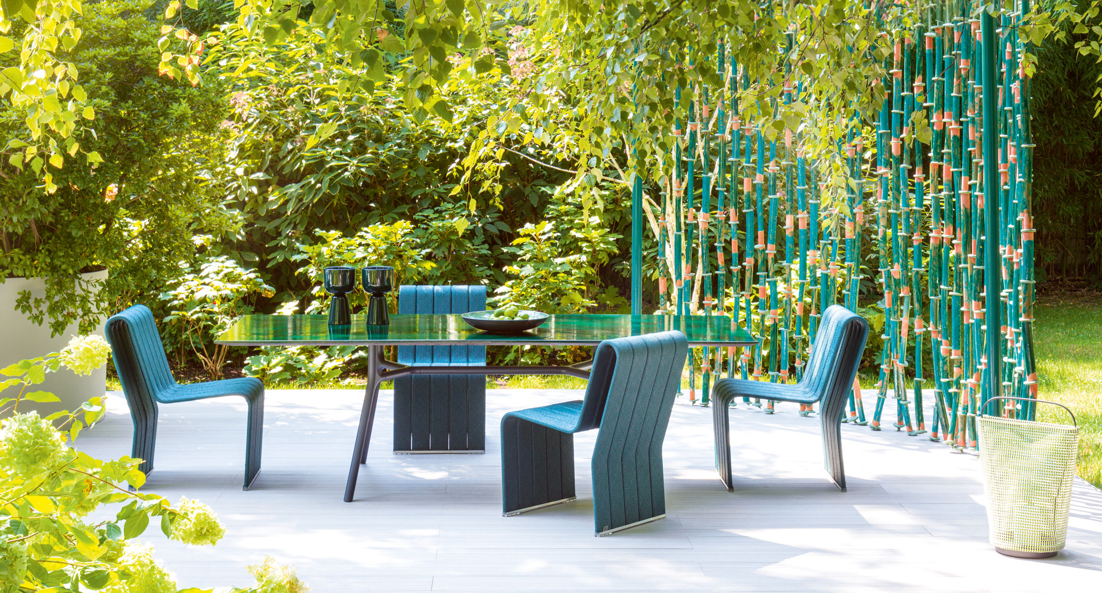 La serie Frame comprende anche poltrone, chaise longue, piattaforme, panche, tavolini ed elementi modulari.